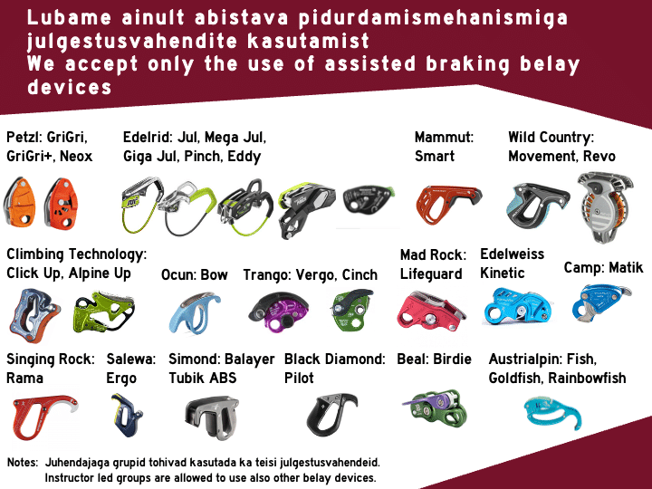 - Lubame ainult abistava pidurdamismehanismiga julgestusvahendite kasutamist ts. ATC'ga julgestamine pole lubatud (list lubatud vahenditest).